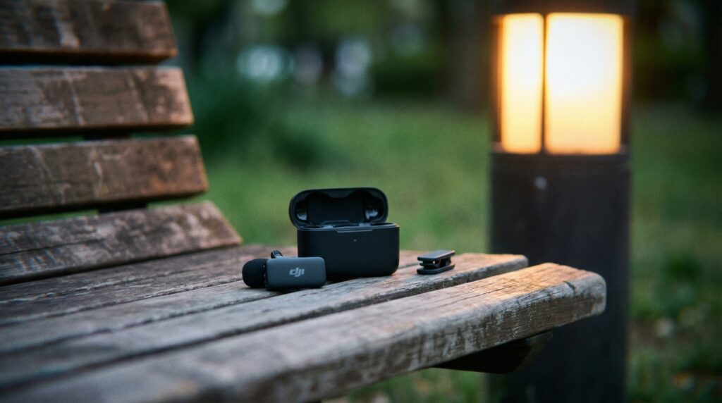 そこで使いたいのが「DJI Mic 2」です。マグネット式のクリップで服の胸元にペタッと留めて、レシーバーをスマホやカメラに差し込むだけ。接続は数秒で終わる。「こんなもんか」と半信半疑で使い始めたら急に音の解像度が上がって驚く、みたいな体験が待っています。