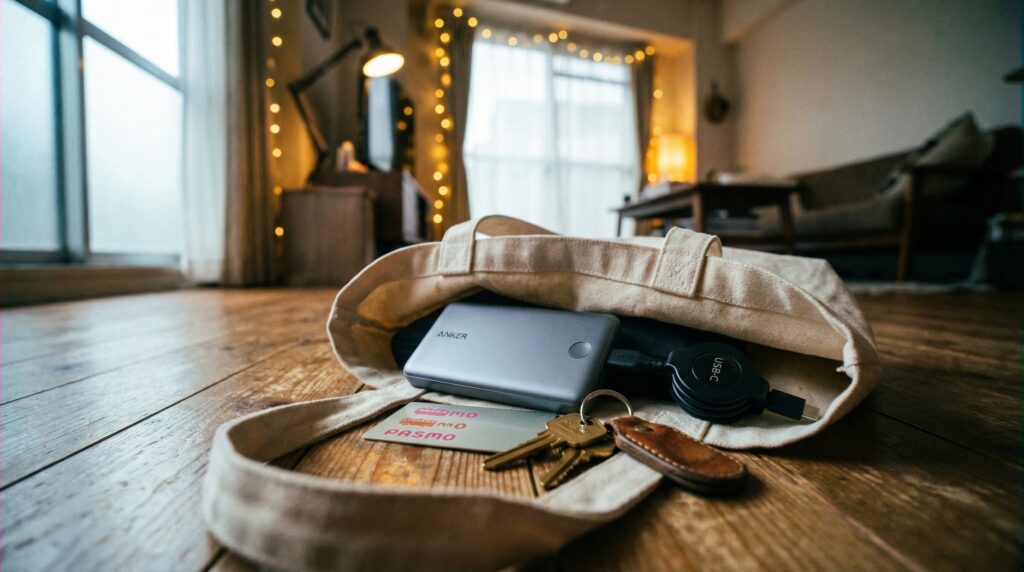 Anker Nano Power Bank 10000mAhは、そのインフラをできる限り小さくしてくれた一台です。10000mAhの容量がありながら、外出着のポケットにすっぽり入るサイズ感。最大45Wの出力で、対応デバイスならスマホを一気にフル充電も狙えます。巻取り式のUSB-Cケーブルが内蔵されているのが地味に便利で、「ケーブル忘れた」という都市型のうっかり事故がなくなります。CIOの充電器との組み合わせで持ち出せば、バッテリー切れを心配する理由がなくなります。カバンをすっきりさせながら、万全の備えを持ち歩けるってわけです。